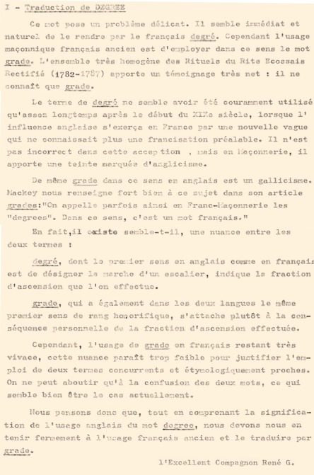 Parler de "rite Emulation" étant déjà un problème en soi, on entend maintenant, dans certaines traductions, parler de "degrés" dans les cérémonies.